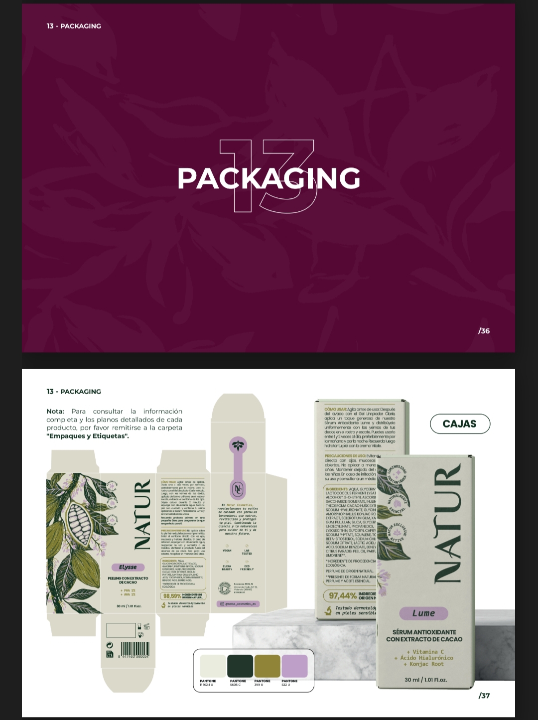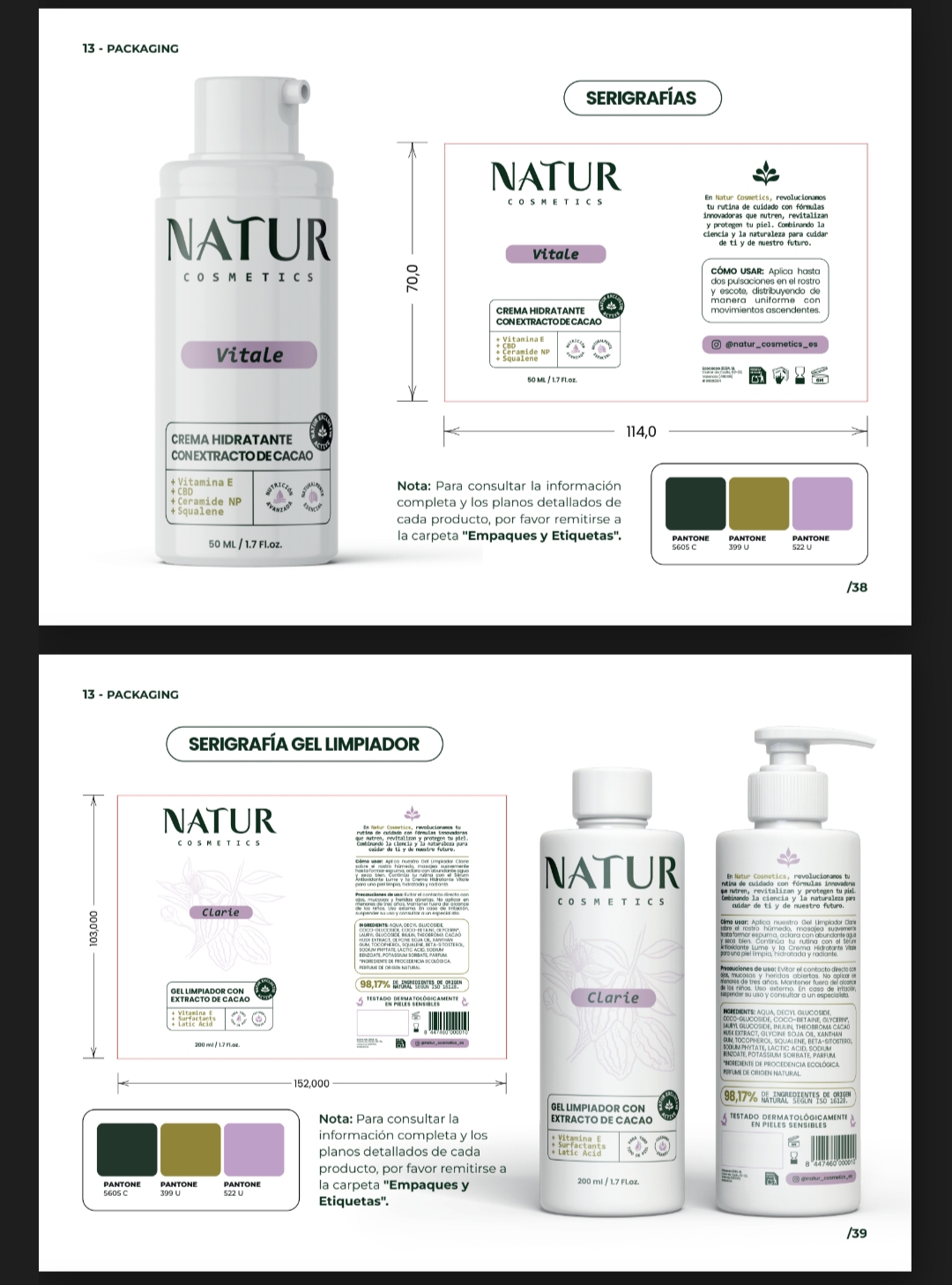 Packaging, etiquetas, material impreso, mockups y piezas de comunicación.
